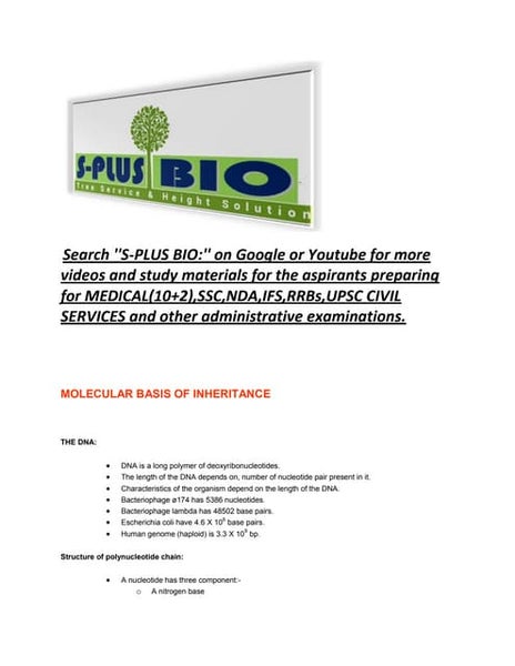 Molecular Basis Of Inheritance Ncert Pdf Read Online Class 12 Biology Study Material Center