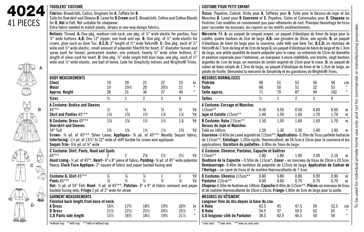 Simplicity Sewing Pattern 4024 Toddler Costumes A 1 2 1 2 3 4 Acrylic White 8 4x5 7x0 5 Cm Amazon Co Uk Home Kitchen